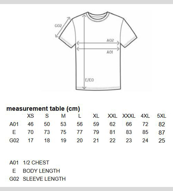 T-Shirt der Marke Promodoro – Aufdruck mittels Folientransfer, Größe bitte aus der Tabelle ermitteln.